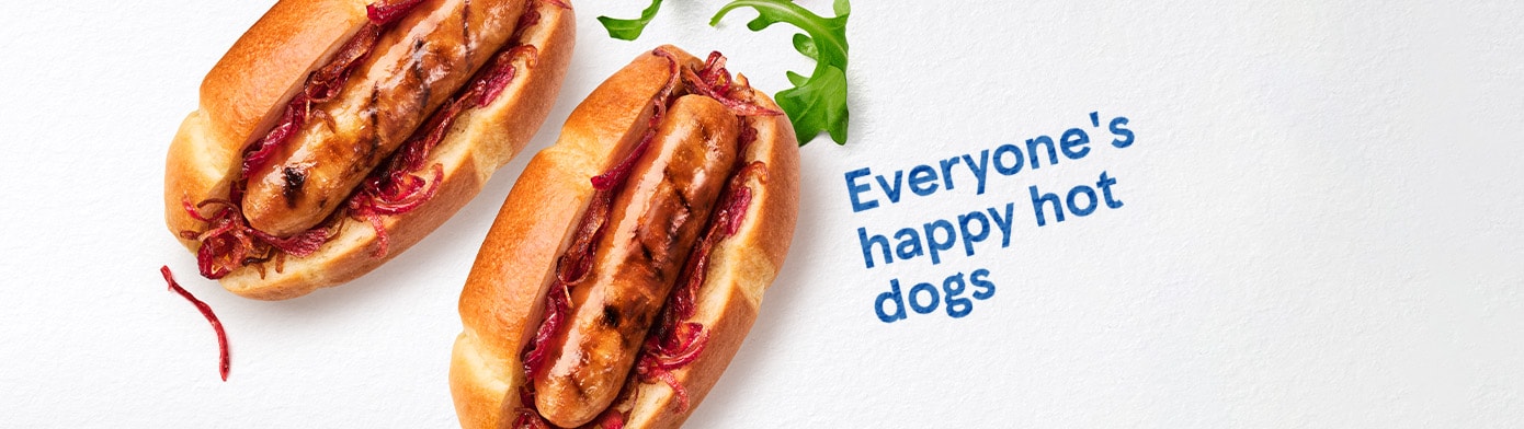 - Cut open 8 brioche rolls down the top, making sure not to cut all the way through, and fill with the sausages, topped with the onions and a sprinkle of grated Cheddar. Serve with coleslaw on the side.