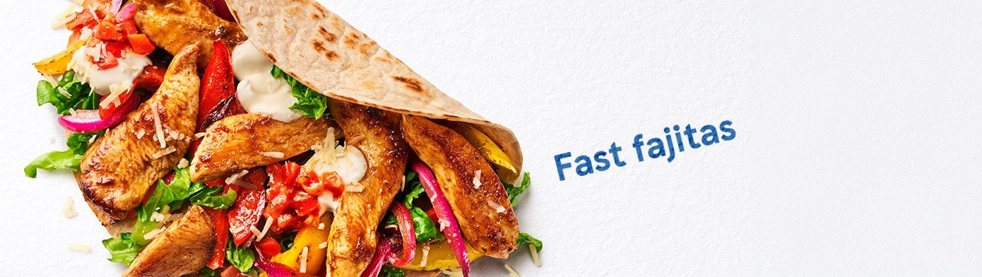 - Heat 1 tablespoon vegetable oil in a large frying pan over a medium-high heat. Add the chicken and fry until golden. Add red onions and peppers and fry for 5 minutes longer, until they start to soften and the chicken is fully cooked. Mix 15g fajita seasoning and cook for 2 minutes, until aromatic. Remove from the heat and stir in coriander and juice of half a lime.