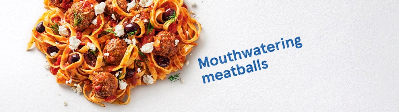 - Heat more oil in a frying pan and fry the meatballs over a medium-high heat for 10 minutes, turning often, until golden. Meanwhile, cook 300g of tagliatelle pasta to pack instructions. Drain, reserving a mug of pasta cooking water.