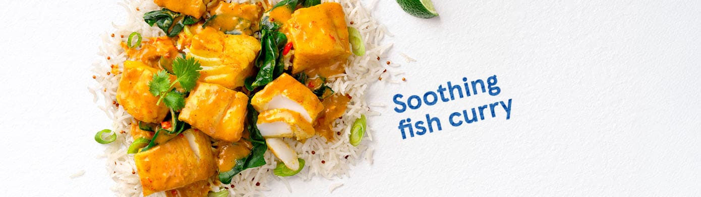 - Fold 220g spinach into the coconut curry and cook for 1-2 mins until wilted. Gently stir in the cod and cook for 3-5 mins until the cod is cooked. Stir through lime juice of 1 lime.